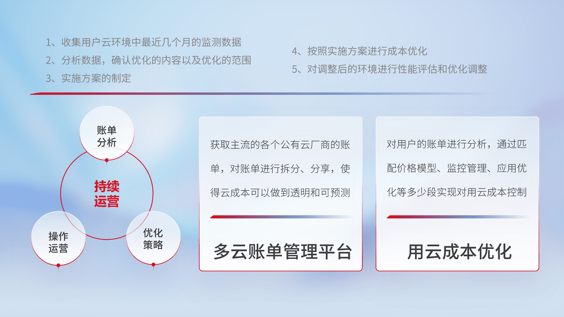 运用智能化工具分析云资源,,,,提供日常费用可视化工具,,自动账单拆分,,,成本优化云上费用,,,,降本增效。。。